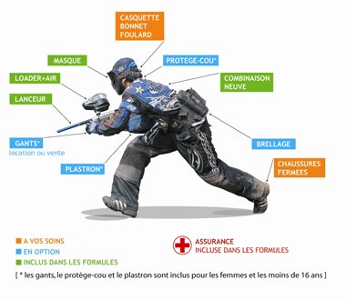 Le Paintball est une activité de loisir opposant deux équipes dont les joueurs sont équipés de masques de protection et de lanceurs (ou marqueurs). Les lanceurs propulsent par air comprimé ou par CO2 des billes de peinture constituées de capsules médicales renfermant une gélatine colorée ou une matière biodégradable...
